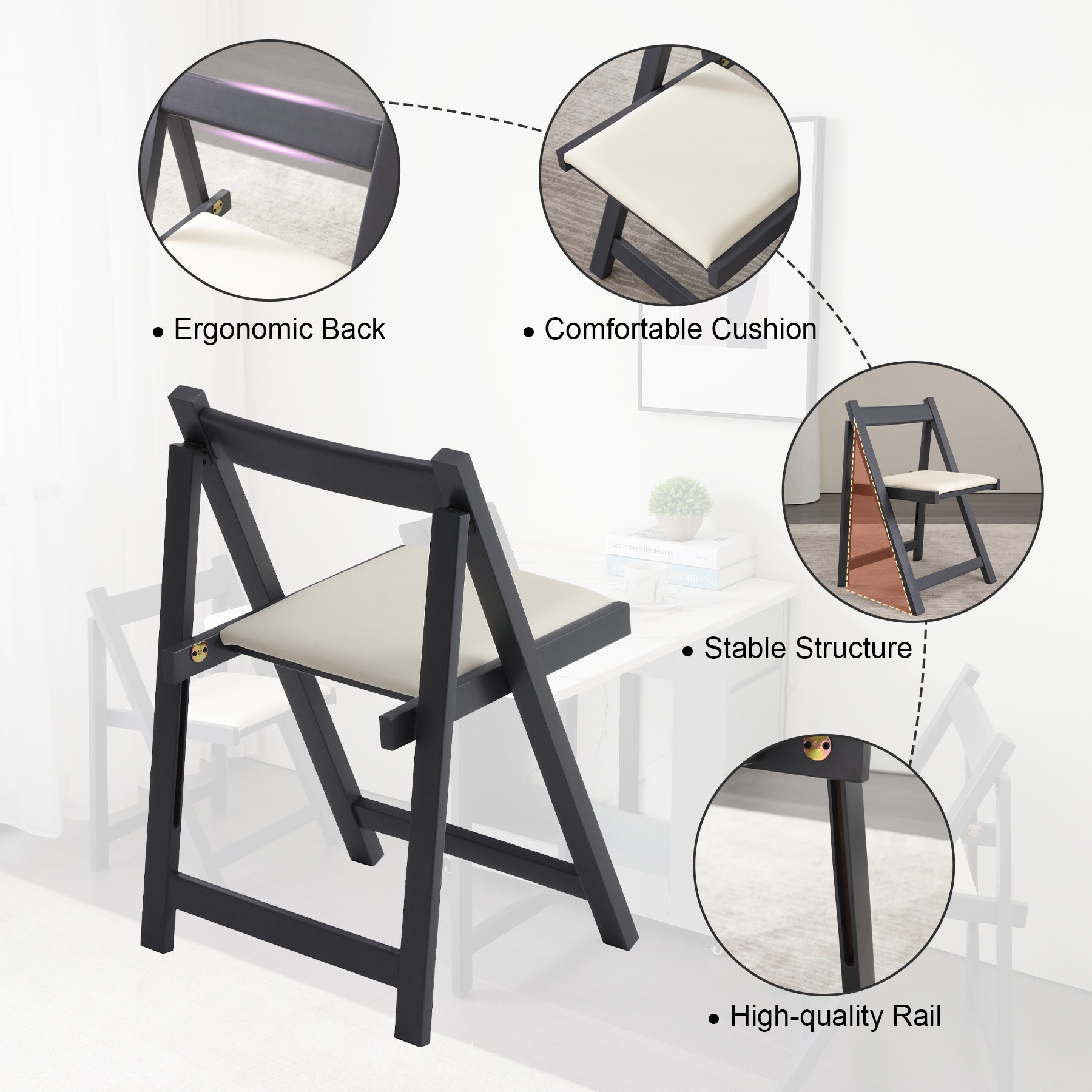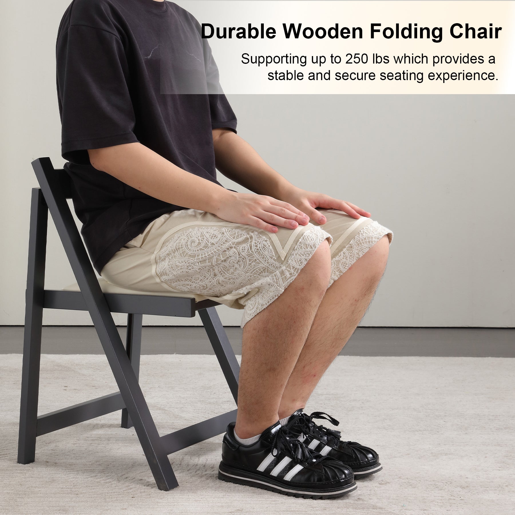 These lightweight and versatile outdoor chairs are perfect for both indoor and outdoor use, making them ideal for camping, party, banquets, patios, restaurants, coffee shops, or RVs. Weighing just 13 pounds, they are easy to lift, transport, and fold flat for space-saving storage when not in use. If you have limited storage space or prefer a clutter-free environment, this kitchen chair set of 2 offers a practical solution. Additionally, a foldable table can conveniently store up to four of these chairs, further maximizing your storage space at home. Crafted from natural wood, these folding desk chairs combine beautiful design with excellent craftsmanship. The smooth, hand-polished edges ensure comfort, while the ergonomic backrest provides solid support for your back. The soft seat cushion adds to the overall comfort, making long periods of sitting more enjoyable. These outdoor chairs folding come fully assembled and are ready to use right out of the box. Simply unpack and unfold them in minutes. Their lightweight design allows for easy placement against a wall, stacking, or storage in a closet, simplifying the storage process. With overall dimensions of 16.5"D x 17.3" W x 26"H and a seat height of 16.5", these chairs fold down to 2.2"D x 17.3" W x 28.7"H. Available in wood, walnut, and grey finishes, they can support up to 268 lbs.